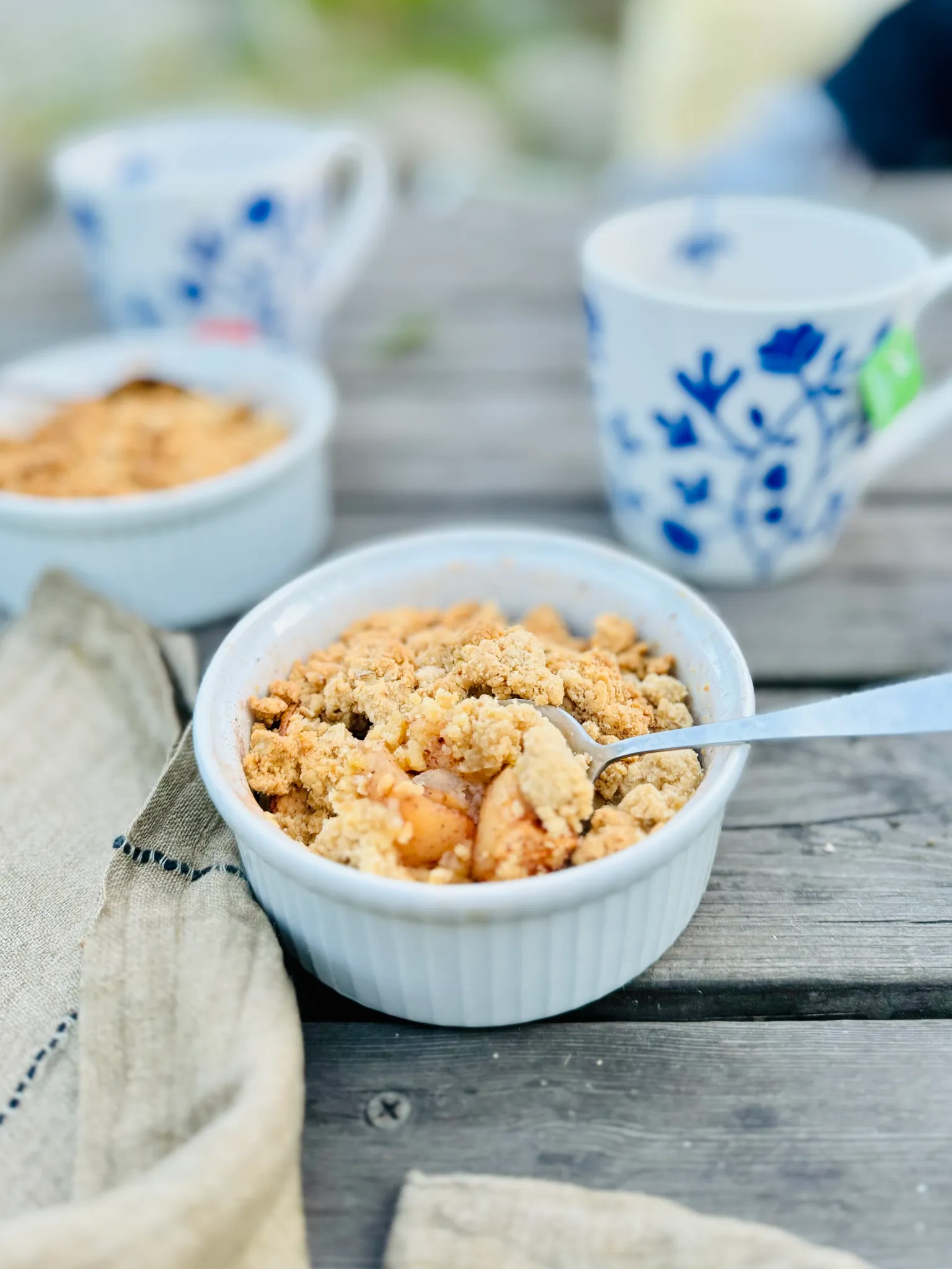Servera gärna din äppelsmulpaj med en härligt krämig raw vaniljsås gjord på cashewgrädde, eller kyld kokosgrädde för en lättare och mjölkfri version. Kombinationen av den varma pajen och den kalla såsen skapar en perfekt balans mellan sött, syrligt och krämigt.