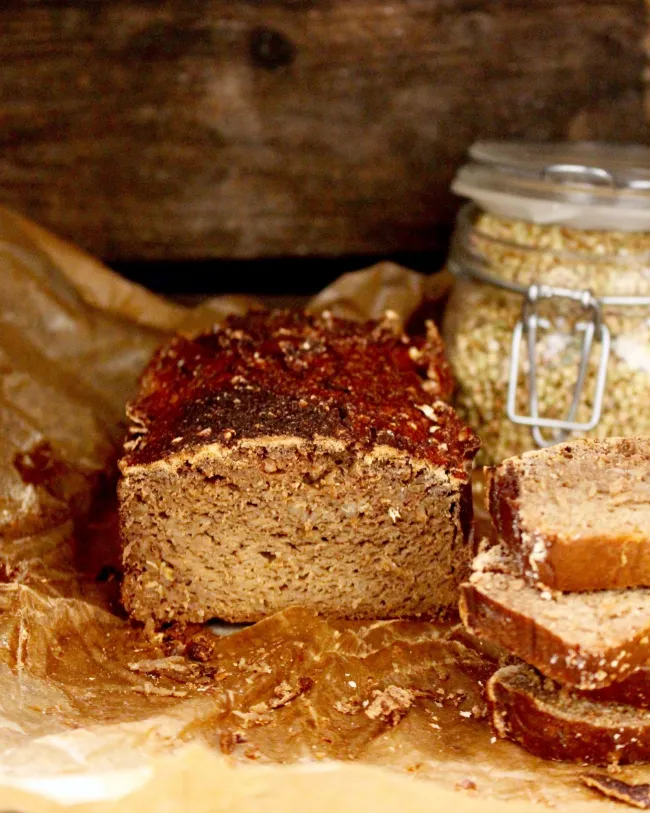 Att grodda bovete tar cirka tre dygn. Därefter kan smeten bakas direkt eller få syras ytterligare ett dygn för mer djup och komplexitet. Resultatet blir en kompakt, saftig, mättande limpa som går utmärkt att skiva och frysa in.