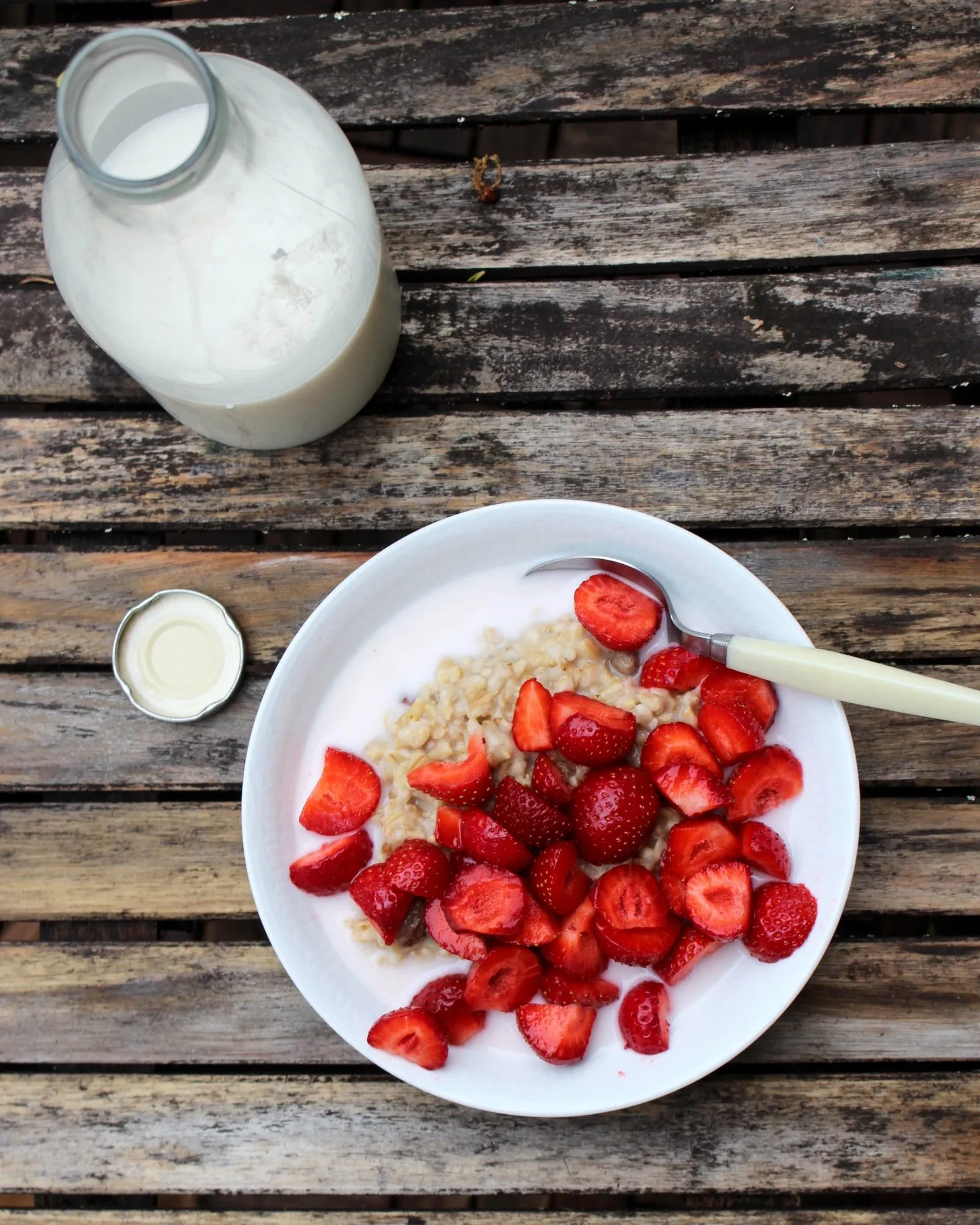 Havregrynsgröt med jordgubbar och cashewnötsmjölk