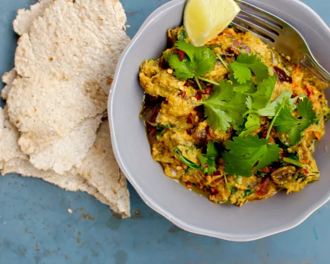 ayurveda brunch bröd dessert dryck efterrätt fermenterat fikabröd fisk fodmap frukost förrätter glass godis granola huvudrätt huvudrätter jul kaka kakor kostråd kyckling kött mellanmål paleo pannkakor pasta pizza produkttips sallad smoothie smårätter snacks soppa surdeg sås tilbehör tillbehör tårta vegan vegetariskt växtbaseratIndisk aubergine- och cashewcurry med havrechapati