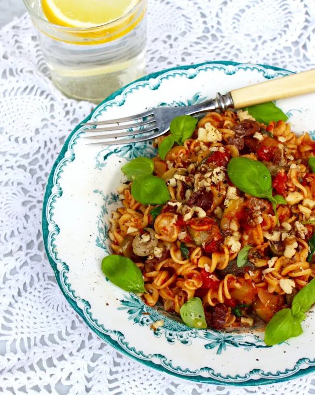 ayurveda brunch bröd dessert dryck efterrätt fermenterat fikabröd fisk fodmap frukost förrätter glass godis granola huvudrätt huvudrätter jul kaka kakor kostråd kyckling kött mellanmål paleo pannkakor pasta pizza produkttips sallad smoothie smårätter snacks soppa surdeg sås tilbehör tillbehör tårta vegan vegetariskt växtbaseratKikärtspasta med tomatsås, zucchini och valnötter