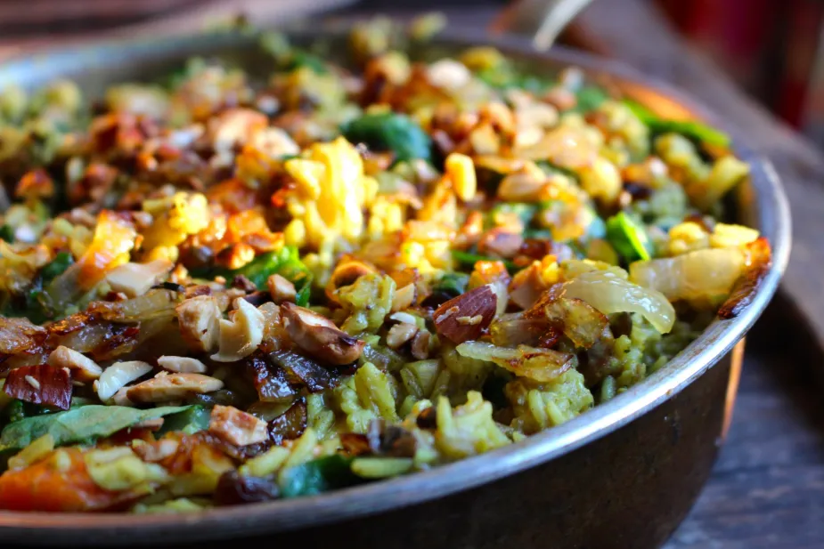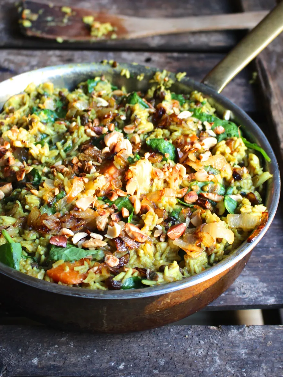 ayurveda brunch bröd dessert dryck efterrätt fermenterat fikabröd fisk fodmap frukost förrätter glass godis granola huvudrätt huvudrätter jul kaka kakor kostråd kyckling kött mellanmål paleo pannkakor pasta pizza produkttips sallad smoothie smårätter snacks soppa surdeg sås tilbehör tillbehör tårta vegan vegetariskt växtbaseratMin gröna Biryani med linser och nötter
