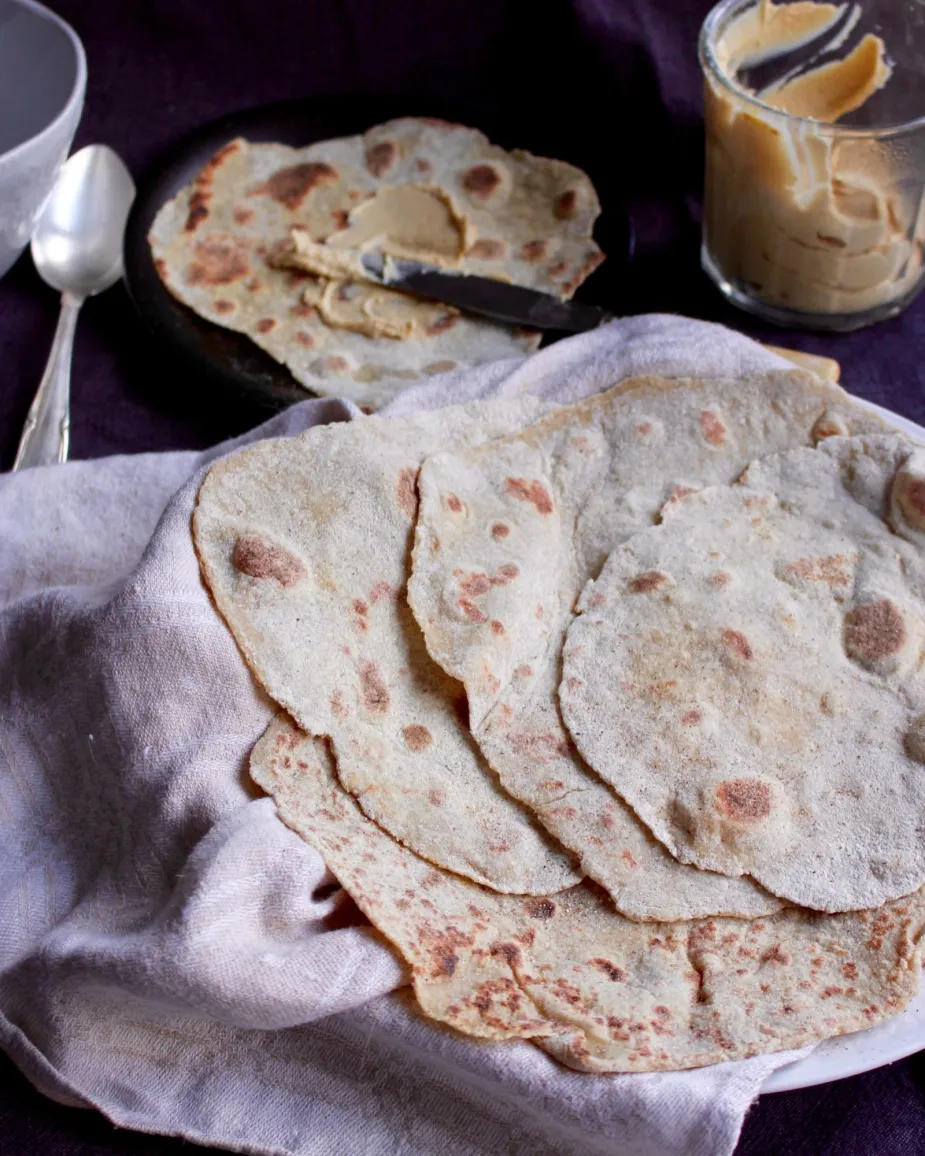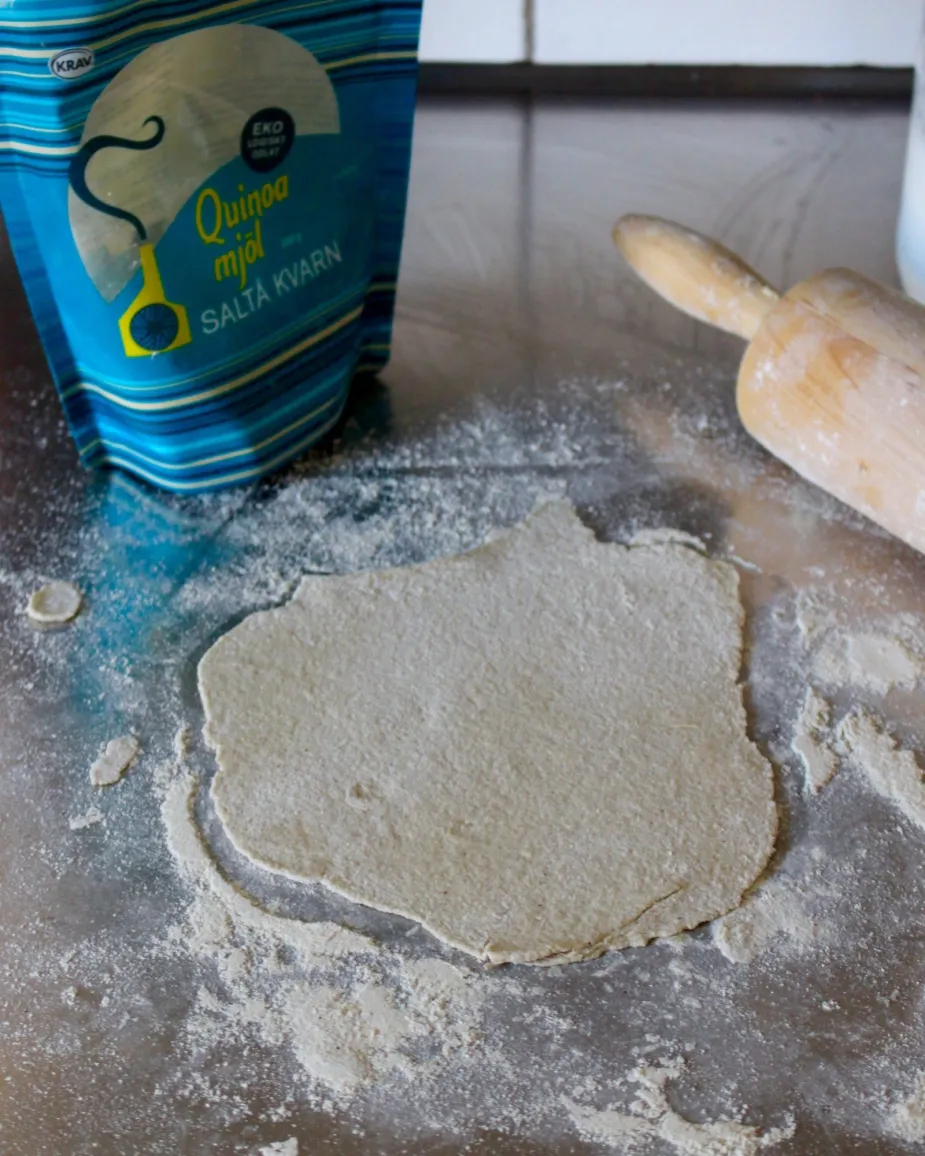 Chapati är ett ojäst indiskt tunnbröd som traditionellt görs på fullkornsvetemjöl och serveras dagsfärskt till maten. Den här varianten är naturligt glutenfri och bakad på quinoamjöl. Servera till grytor och soppor eller använd som wrap med hummus, gröna blad, lök, tomat och örter.