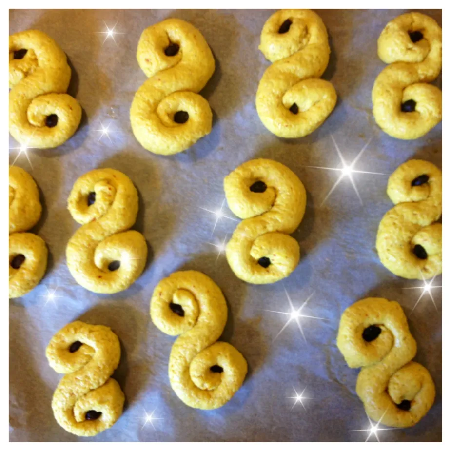 Så pass många av er har alltså hört av sig och bett om att få tillbaka recepten så jag måste lägga upp min senaste version igen. Har du bakat ett av mina recept på naturligt glutenfria lussekatter förut så kommer du att känna igen proportioner men du kanske också märker att jag har gjort några justeringar av ingredienser. Jag har t.ex. bytt ut mjöler till mer näringsrika alternativ som durra/havre och rårsimjöl istället för vitt rismjöl.