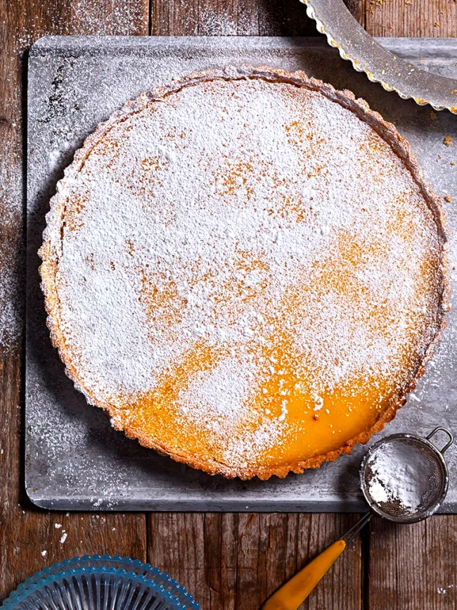 Receptet har blivit mångas bästa dessertrecept. Gillar man citrondesserter ger den här citronpajen allt det man älskar med just citronefterrätter – den är syrlig, söt och aromatisk. Samtidigt len i konsistensen och med en frasig pajbotten. En första version av receptet ligger sedan några år här. I boken finns förresten fler olika glutenfria recept på pajdeg till olika sorters pajer.