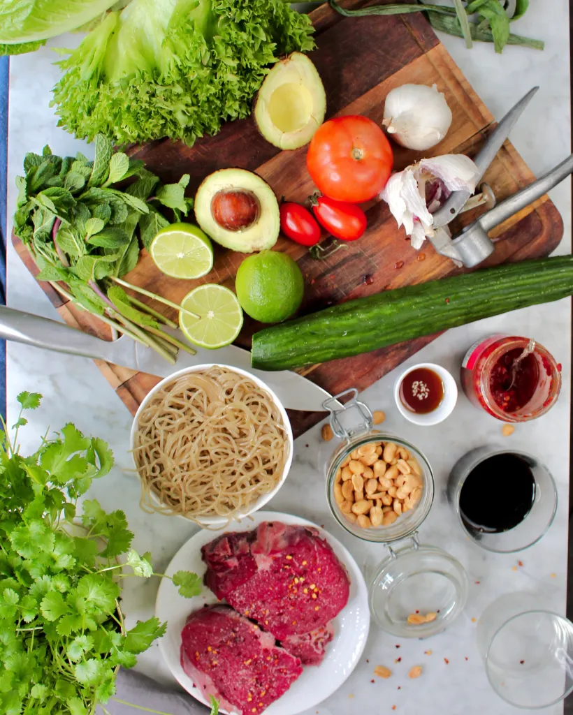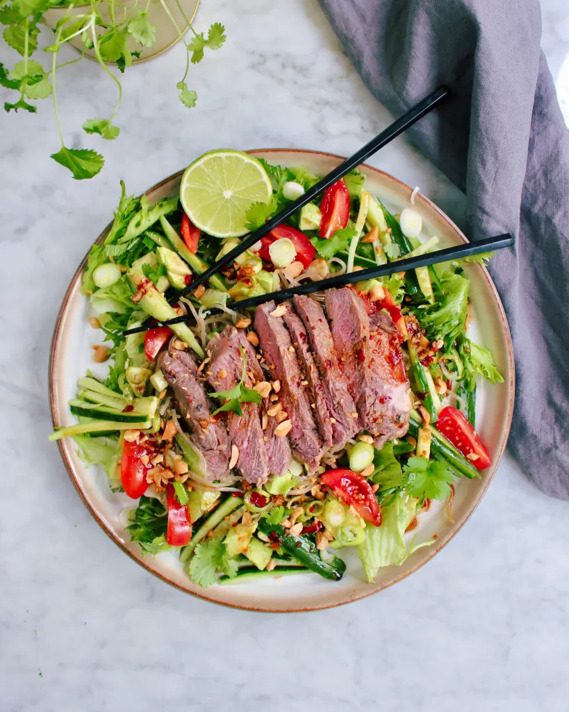 ayurveda brunch bröd dessert dryck efterrätt fermenterat fikabröd fisk fodmap frukost förrätter glass godis granola huvudrätt huvudrätter jul kaka kakor kostråd kyckling kött mellanmål paleo pannkakor pasta pizza produkttips sallad smoothie smårätter snacks soppa surdeg sås tilbehör tillbehör tårta vegan vegetariskt växtbaseratThaibiffsallad med glutenfria nudlar