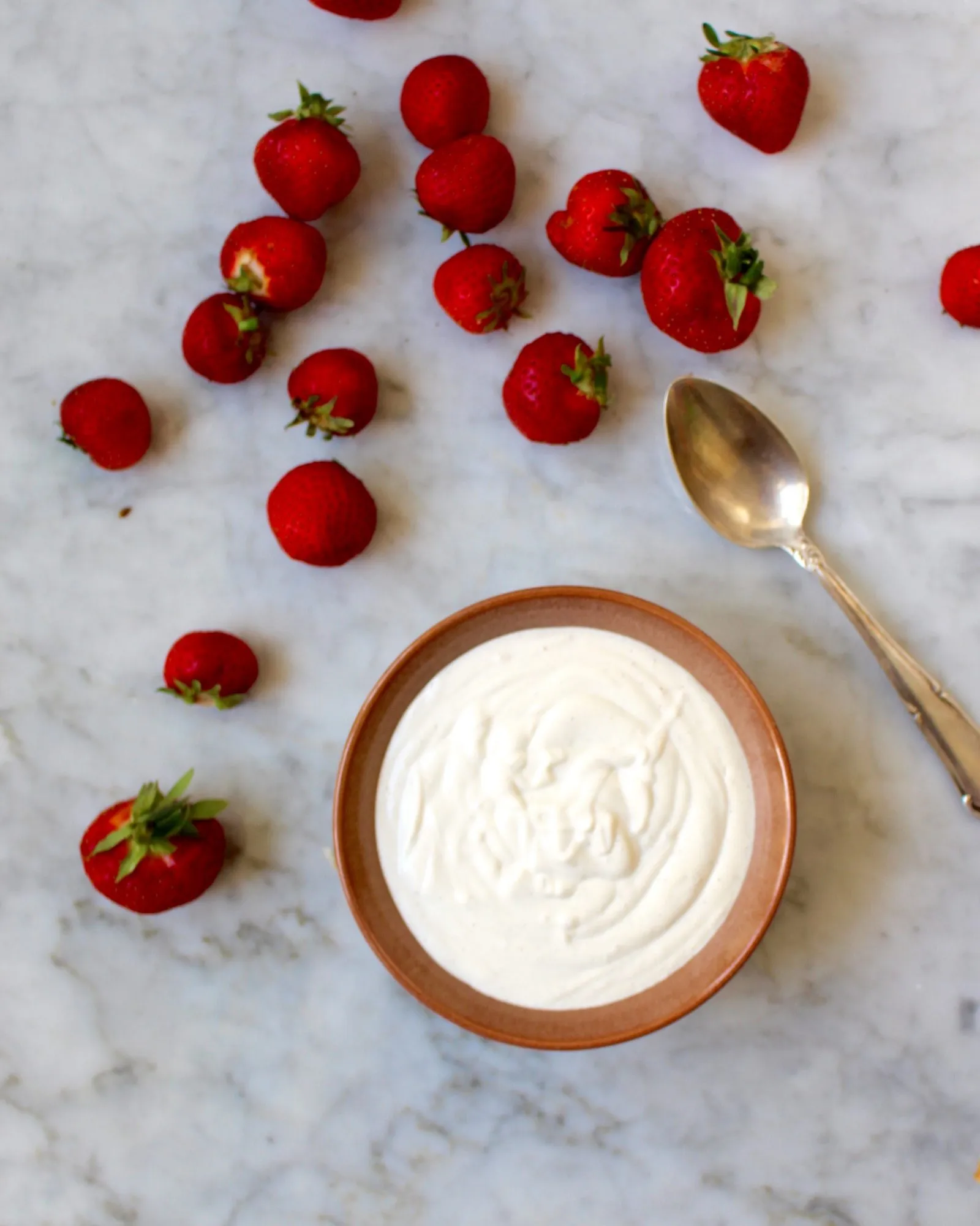ayurveda brunch bröd dessert dryck efterrätt fermenterat fikabröd fisk fodmap frukost förrätter glass godis granola huvudrätt huvudrätter jul kaka kakor kostråd kyckling kött mellanmål paleo pannkakor pasta pizza produkttips sallad smoothie smårätter snacks soppa surdeg sås tilbehör tillbehör tårta vegan vegetariskt växtbaseratCashewgrädde med vanilj och jordgubbar