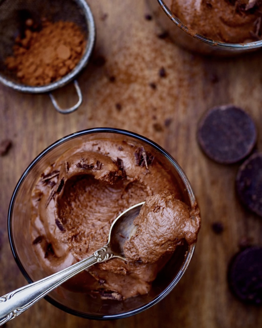 Det är en tjock, mörk och len chokladmousse gjord med traditionell teknik, men med kokosmjölk i stället för grädde. Du kan söta med en liten mängd honung, agave, björksocker eller annat valfritt alternativ i stället för vitt socker. Det går också bra att undvika extra sötning helt. Sötman från chokladen kan räcka.