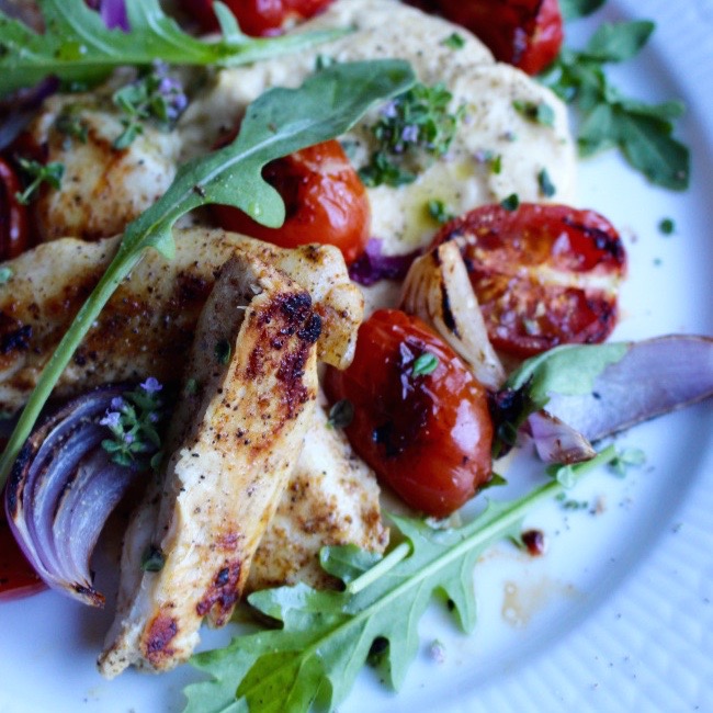 Kombinationen hummus och rostad tomat fungerar utmärkt istället för mos eller puré. Man äter alltså hummusen i lite större mängd istället för annan kolhydrat på tallriken. Servera tillsammans med