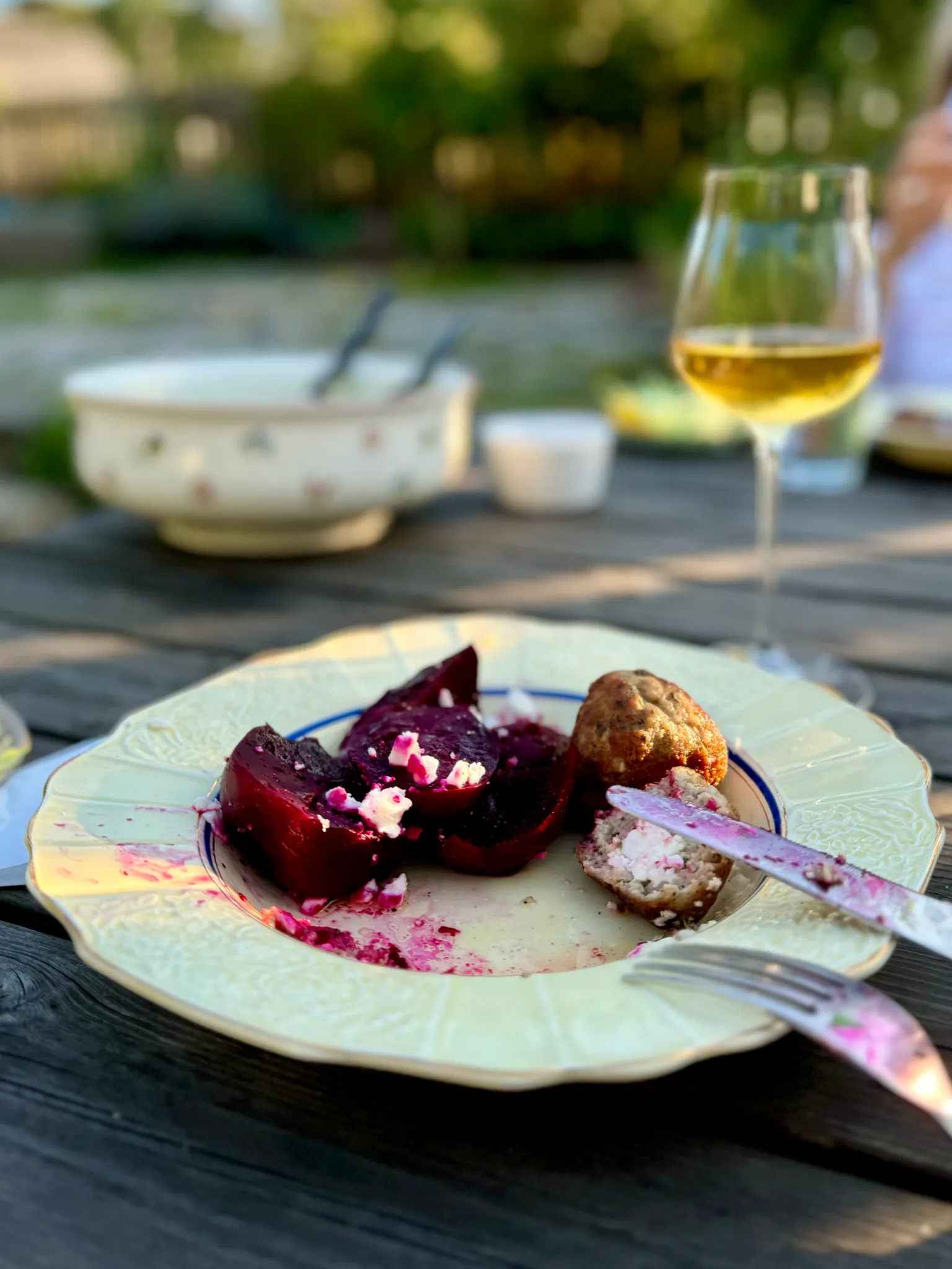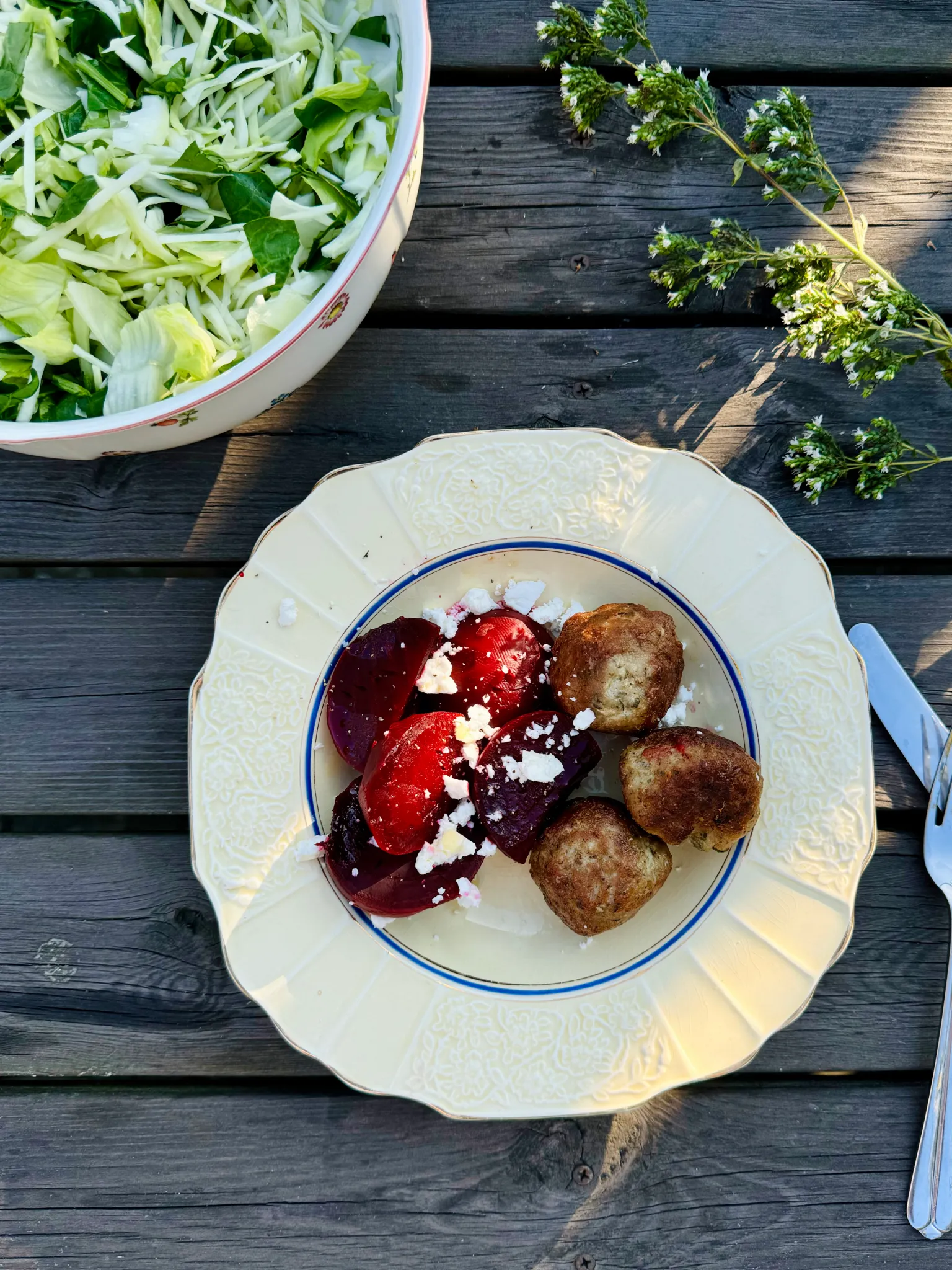 Ett enkelt och smakrikt favoritrecept: Lammfärsbullar med örter och vitlök, serverade med kokta rödbetor. En proteinrik rätt med låg andel stärkelse som ändå innehåller en hel del fibrer.