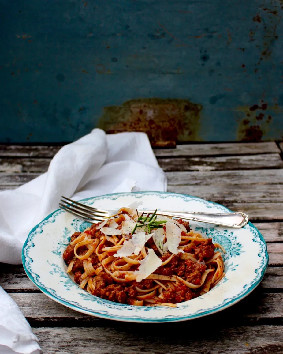 Min ragù bolognese, tillagad med omsorg och lång koktid, har varit en av mina paradrätter sedan 20-årsåldern. En riktigt bra köttfärsragù bygger lager på lager av smak genom hela tillagningen – det gäller att ha tålamod och smaka av regelbundet.