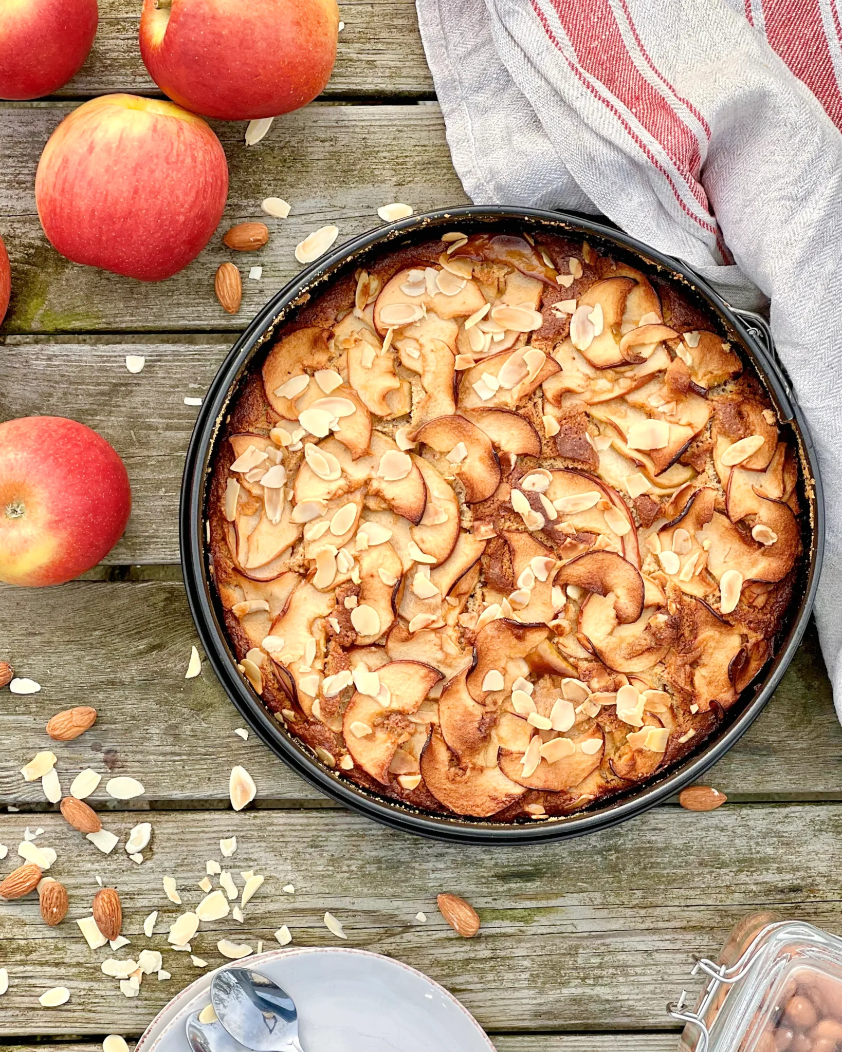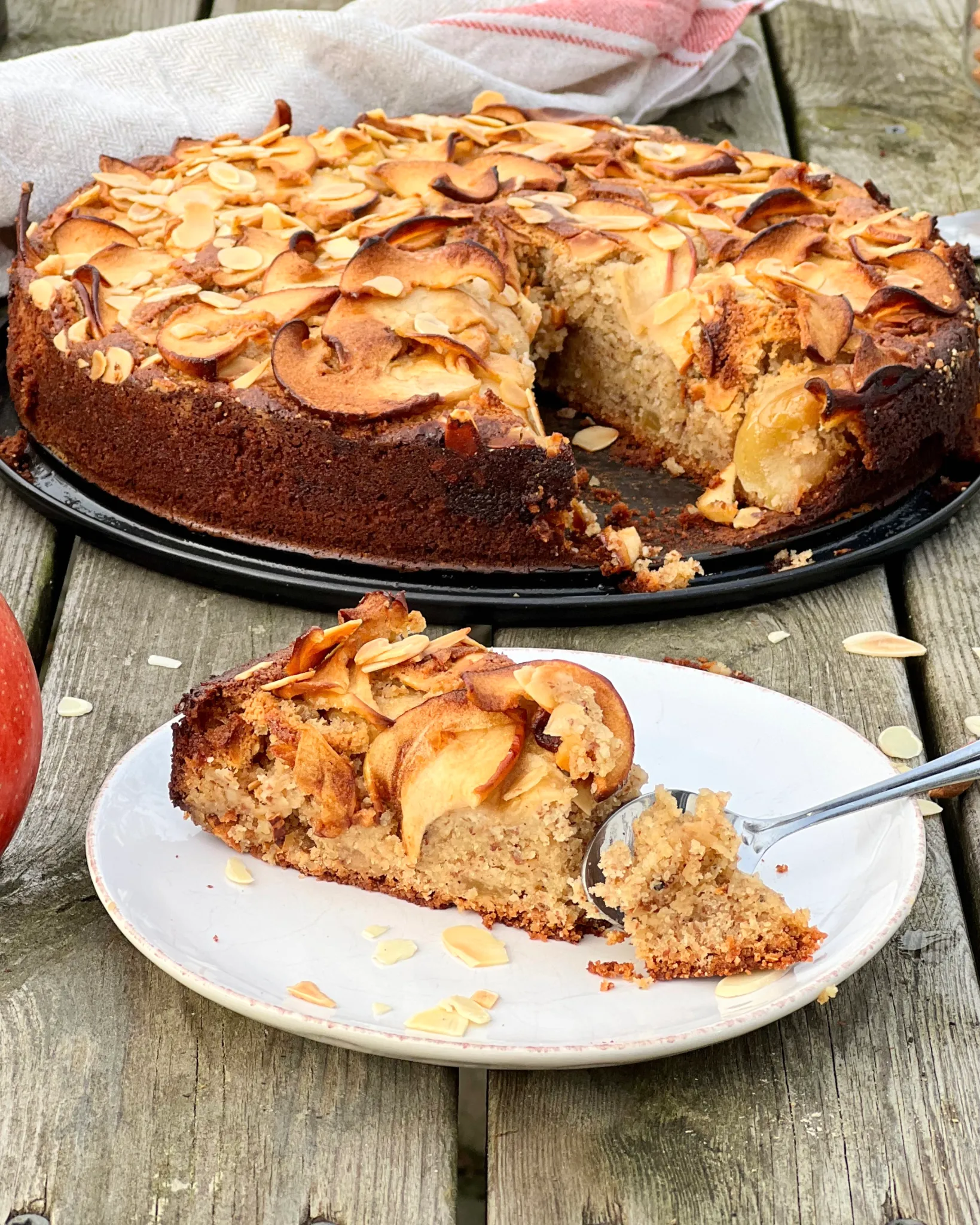 En lite extra söt, lyxig bjudkaka till gofika och kalas. Saftig äppelkaka, naturligt glutenfri, gjord av mycket äpple och mandel, kryddad med kardemumma och ingefära och sötad med lönnsirap. Alltså makalöst god.