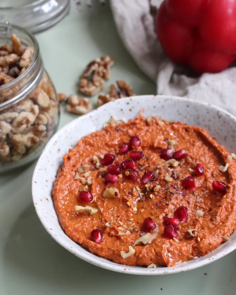 Servera muhammara som meze, dip till grönsaker eller som sås till kött och fisk. Jag serverade min tillsammans med andra libanesiska smårätter och socca på plåt.