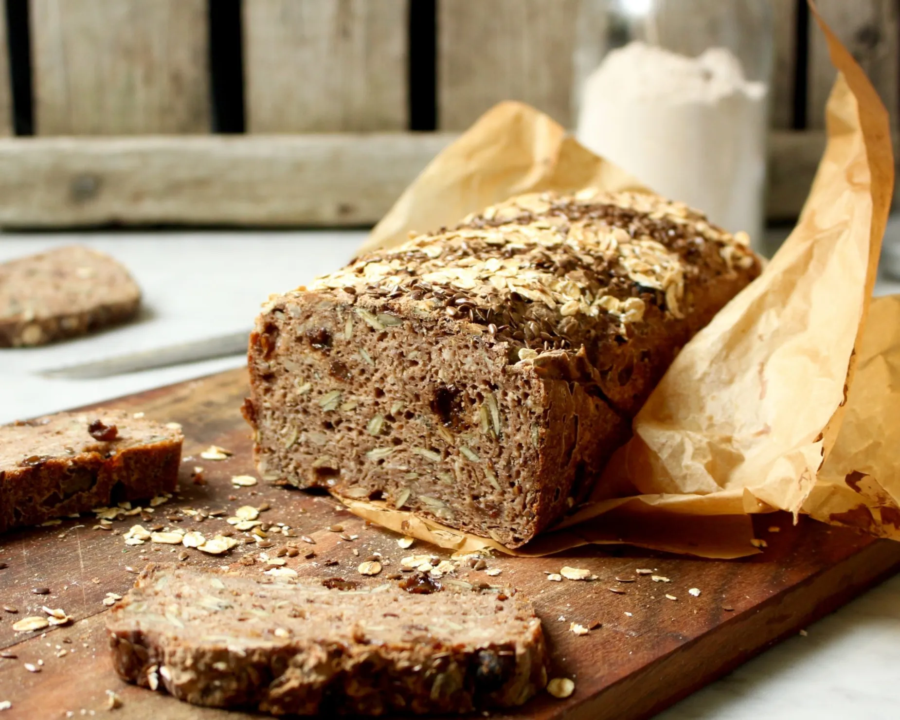 Saftig och smakrik naturligt glutenfri fullkornslimpa. Ett frukostbröd med hög mättnad, mycket fibrer och en tydlig andel frön.