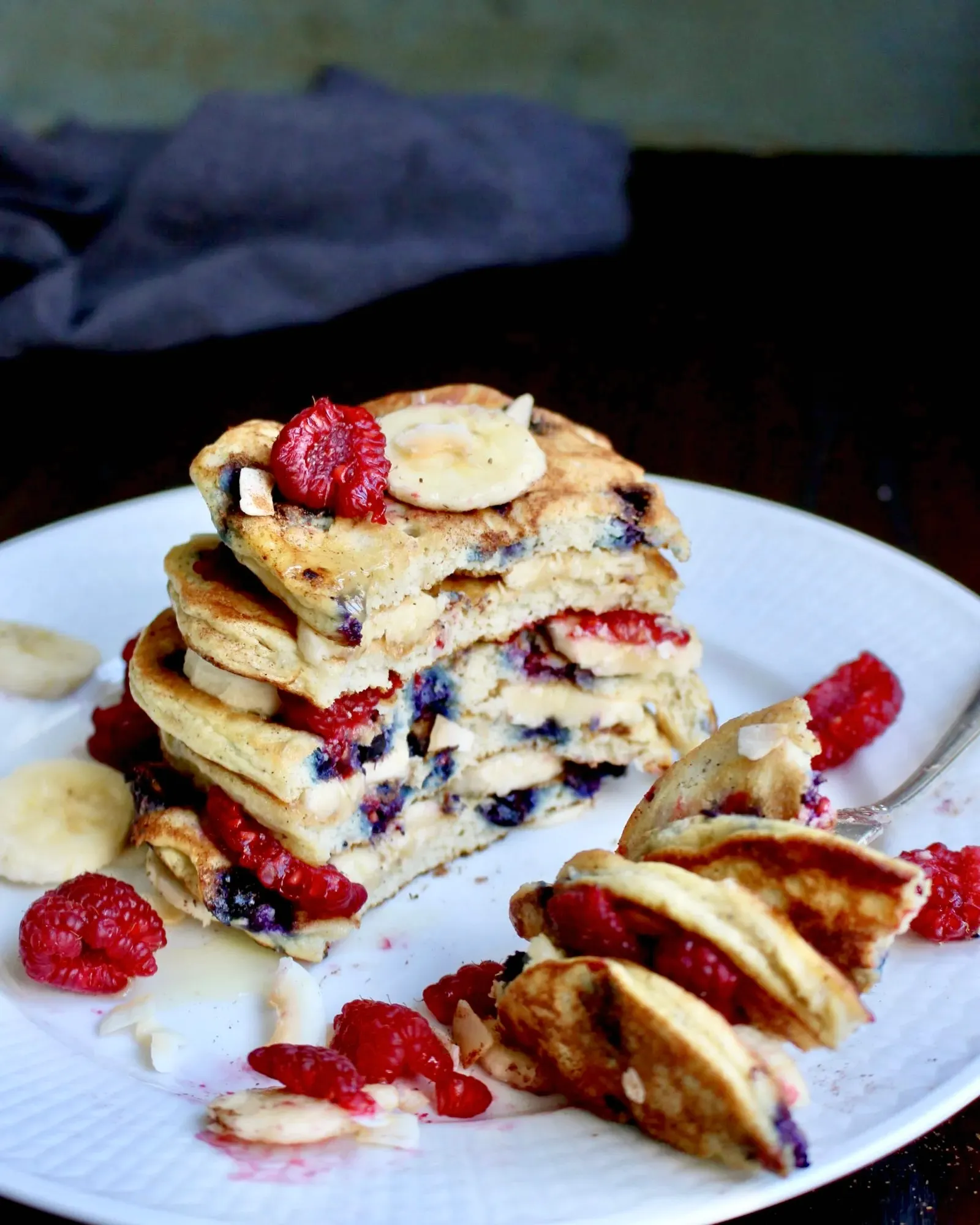 Jag har protein- och fiber-maxat mina pannkakor med extra kollagen och kokosmjöl istället för mandelmjöl. Det ger en rejält mättande måltid som inte blir för energirik eller tung när det inte behövs.