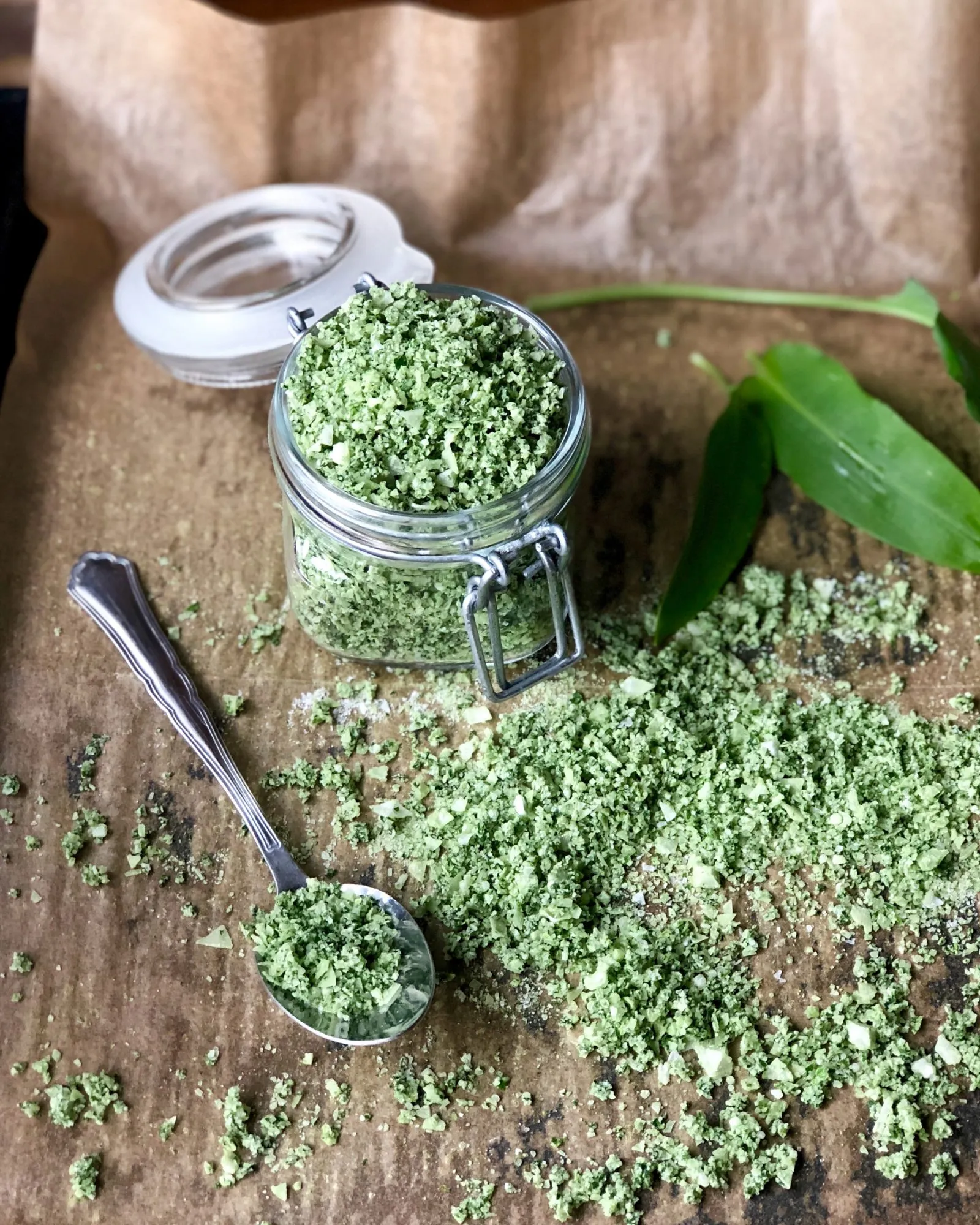 Det här blir ett aromatiskt bordssalt med tydlig ton av gräslök och en mycket mild vitlökssmak. Använd istället för flingsalt eller örtsalt.
