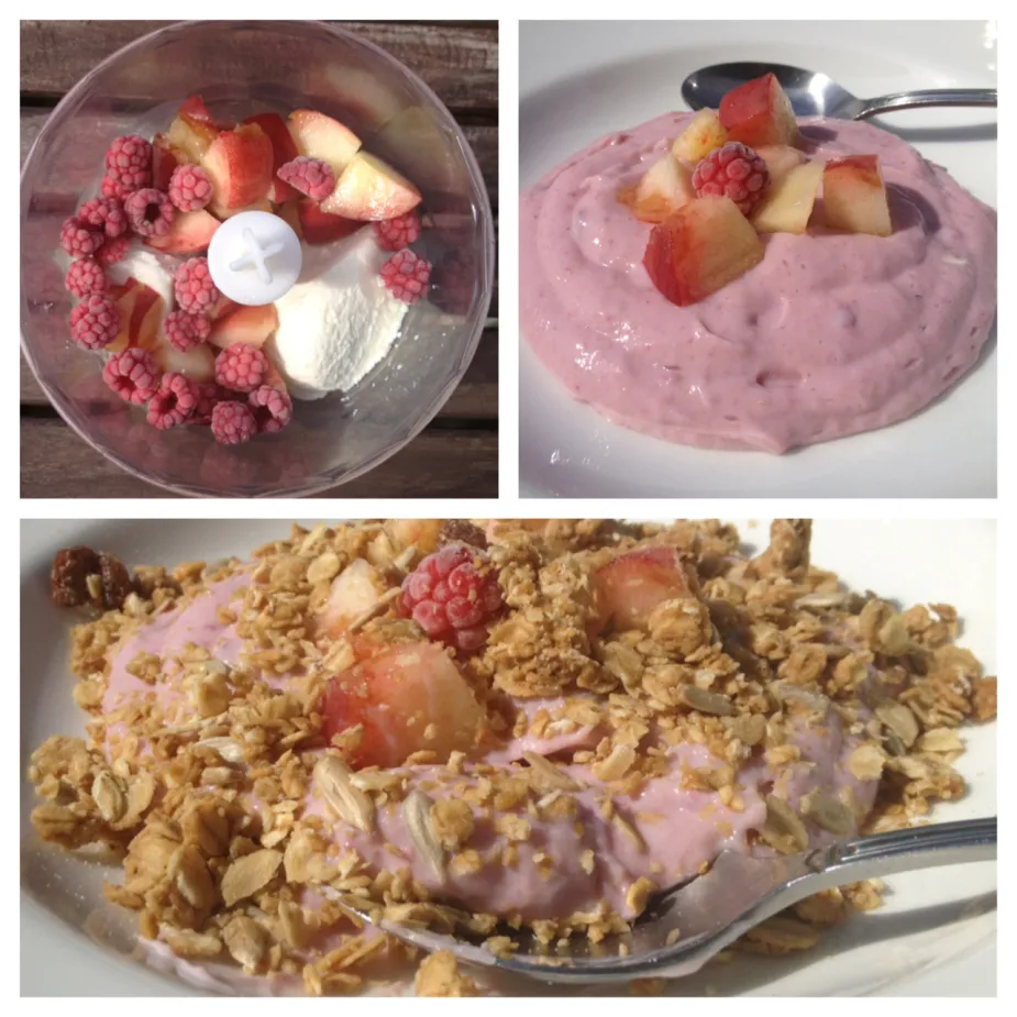 Den här ”yoghurten” är ett enkelt sätt att få till en krämig, mättande och sockerfri måltid som fungerar lika bra till frukost som till mellanmål eller ett lätt kvällsmål. Basen är till ungefär hälften silkestofu och till hälften frukt och bär, vilket ger en len konsistens och ett naturligt sött resultat utan tillsatt socker.