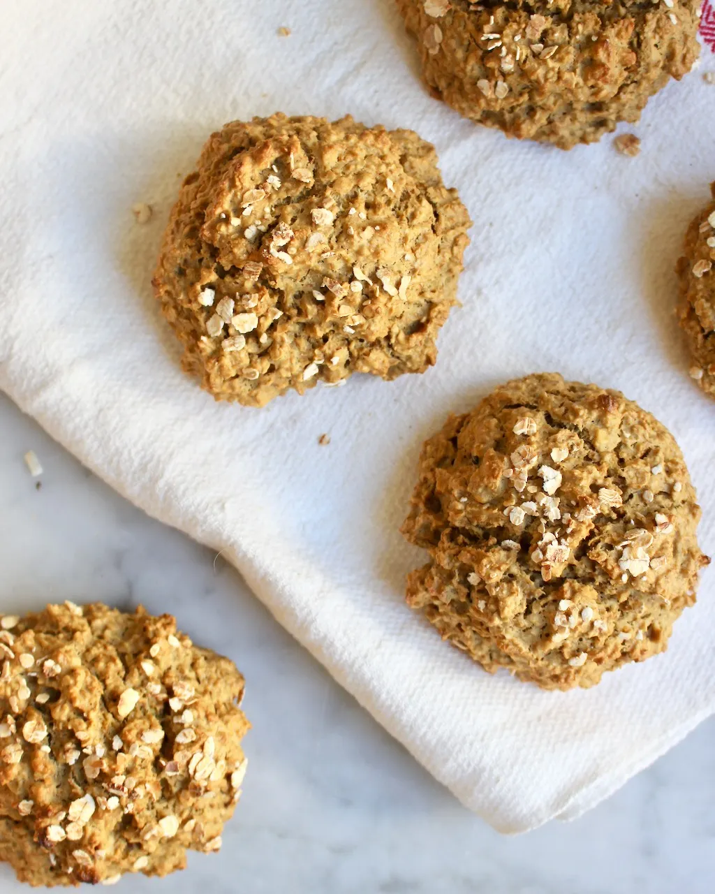 Scones innehåller smör eller annat fett; de här småbröden bakas nästan precis som scones men innehåller inget extra fett, om man inte vill lägga till det själv. I näringssammansättning blir frallorna ungefär som gröt serverat med ägg. Nyttigt, fiberrikt och gott!