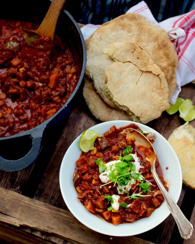 ayurveda brunch bröd dessert dryck efterrätt fermenterat fikabröd fisk fodmap frukost förrätter glass godis granola huvudrätt huvudrätter jul kaka kakor kostråd kyckling kött mellanmål paleo pannkakor pasta pizza produkttips sallad smoothie smårätter snacks soppa surdeg sås tilbehör tillbehör tårta vegan vegetariskt växtbaseratMustig vegansk chiligryta med raw sour cream